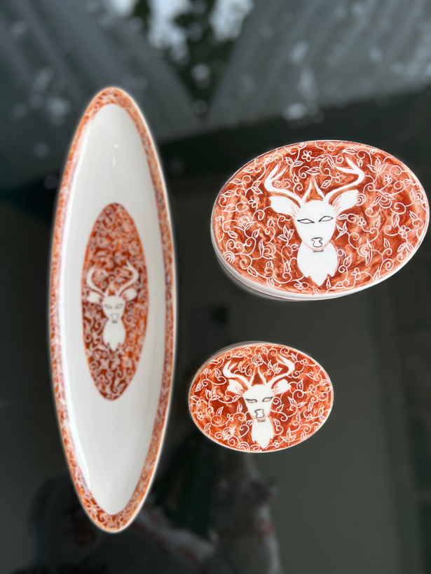 ست پذیرایی سه تکه طرح گوزن طلا کوب